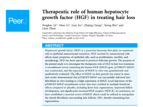 В данной работе продемонстрировано, что HGF (фактор роста гепатоцитов) стимулирует пробуждение спящих волосяных фолликулов и улучшает микроциркуляцию кожи головы, что способствует росту новых волос. На основе этих данных препараты, содержащие HGF, такие как P198 ExoHealer, представляют интерес для применения в трихологических программах при диффузном и андрогенетическом выпадении волос.